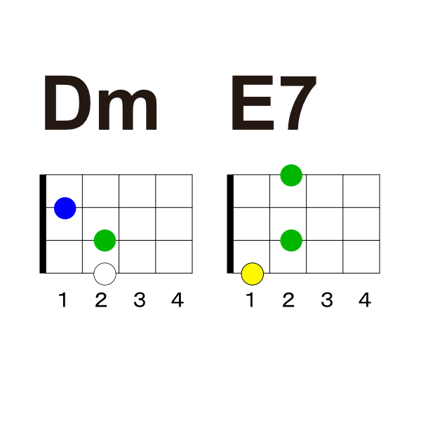 DmとE7のコードチェンジがやりにくい理由は、共通する指がないため・・・